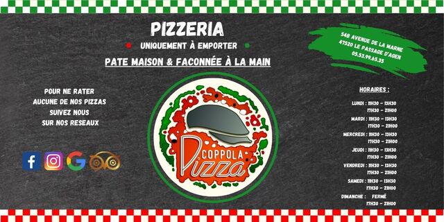 Sur place, à emporter ou en livraison, Pizza Coppola vous invite à savourer une pizza authentique, généreuse et pleine de caractère.